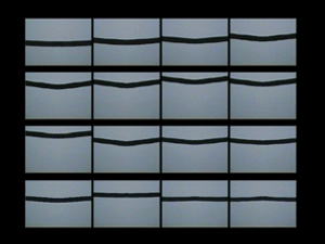 configuration. We perceive a black and a white kind of shadow-line in slow and fast movements, dividing space, communicating. They remind